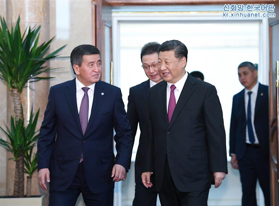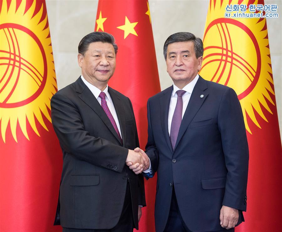 6월 13일, 시진핑 중국 국가주석이 비슈케크에서 소론바이 제엔베코프 키르기스스탄 대통령과 회담을 가졌다. [촬영/ 신화사 기자 리쉐런(李學仁)]