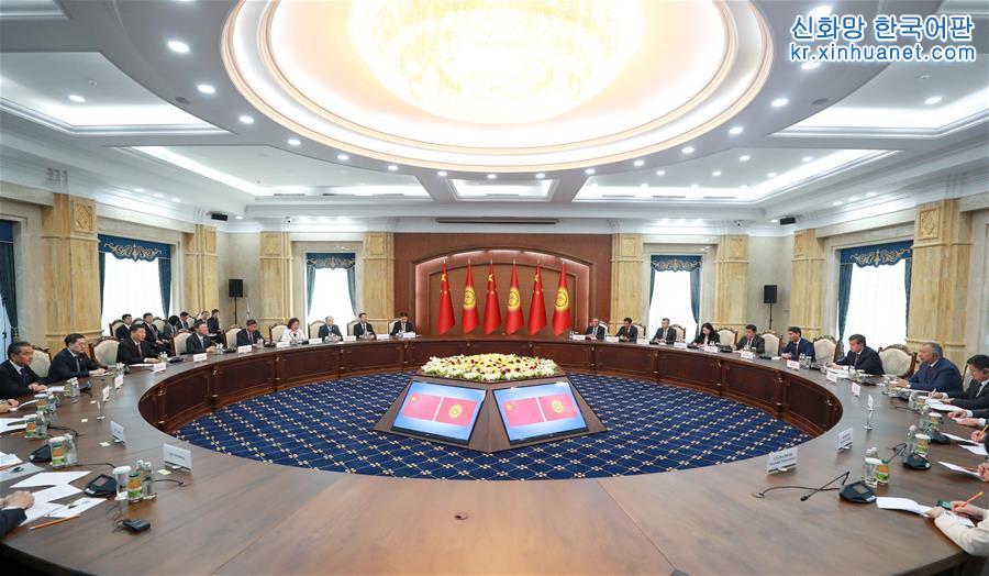 6월 13일, 시진핑(習近平) 중국 국가주석이 비슈케크에서 소론바이 제엔베코프 키르기스스탄 대통령과 회담을 가졌다. [촬영/ 신화사 기자 리쉐런(李學仁)]