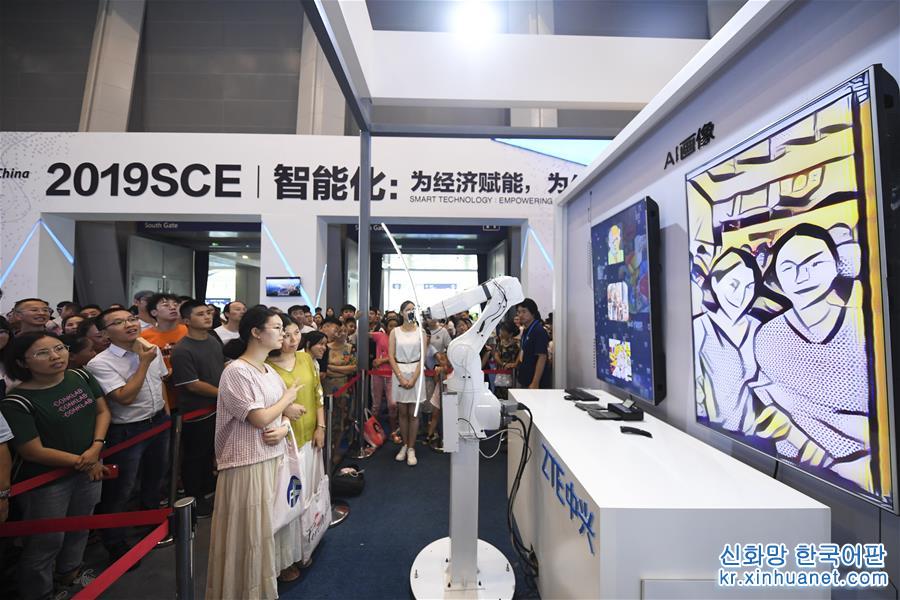2019년 중국국제스마트산업박람회가 대중에게 오픈된 첫날인 이날, 수많은 시민과 유람객이 충칭(重慶) 국제컨벤션센터에 찾아와 ‘스마트응용’과 ‘스마트생활’을 몸소 체험했다. [촬영/ 신화사 기자 왕취안차오(王全超)]
