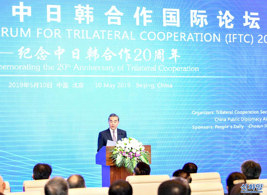 왕 외교부장은 지리적으로 가깝고 인적·물적 교류가 활발한 중·한·일 3국은 공동의 이익을 가지고 있어 서로 중요한 협력 파트너라고 밝혔다. 지난 20여 년간 3국은 실용적인 협력을 통해 ▷동아시아 평화와 안정 수호 ▷지역 통합 선도 ▷세계 발전·번영 촉진 등을 이끄는 중요한 플랫폼으로 자리잡았다고 전했다. 이어 중·한·일 3국협력사무국(TCS)의 주요 프로젝트인 중·한·일 협력 국제포럼은 3국의 지혜를 모으고 서로의 발전 경험을 배우며 교류 협력을 심화하는 데 긍정적인 역할을 했다고 평가했다.