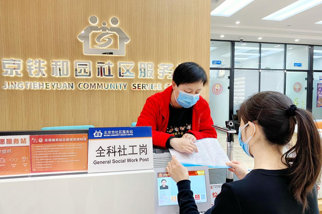 베이징 시청(西城)구 징톄허위안(京鐵和園) 지역사회 서비스지점 직원이 주민에게 관련 정보를 안내하고 있다. (취재원 제공)
